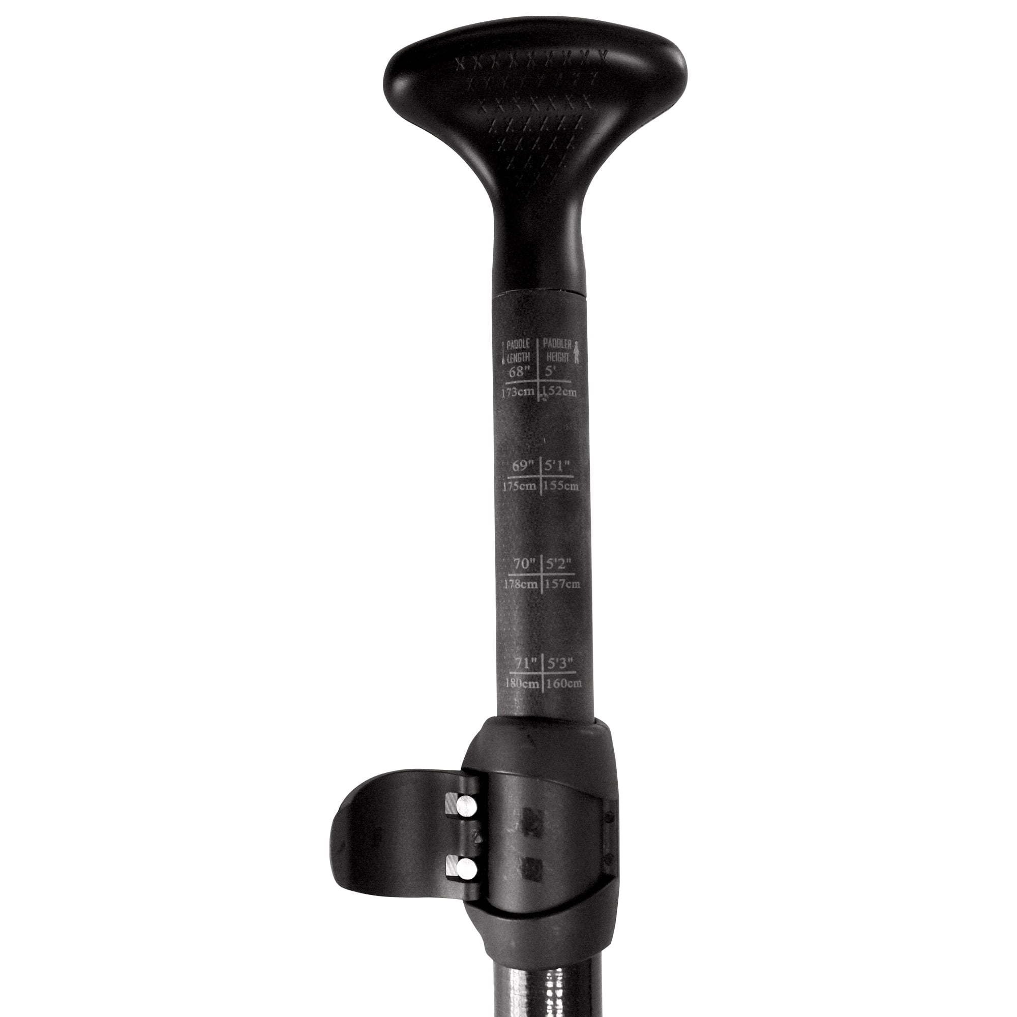 Designed for optimal performance, this fiberglass paddle is the perfect companion for your stand-up paddle board. Its three-piece construction allows for easy transport and storage. Whether you're staying local or taking a road trip, you can easily pack your paddle in your luggage or inflatable SUP bag. Fully customizable, the 3-Piece Adjustable Fiberglass Stand-Up Paddle Board Paddle quickly adjusts in length from 67-in to 83-in to accommodate all users, no matter the activity. An ergonomic, comfort-fit 'T' handle helps you keep your grip so you can enjoy hours of fun on the water.