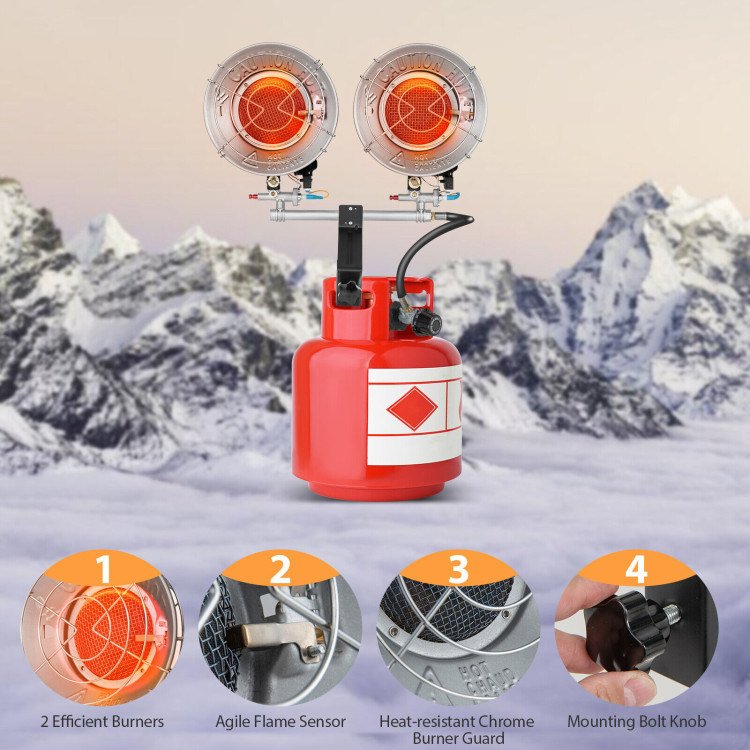 30000 BTU Dual Head Tank Top Outdoor Heater with 2 Burners