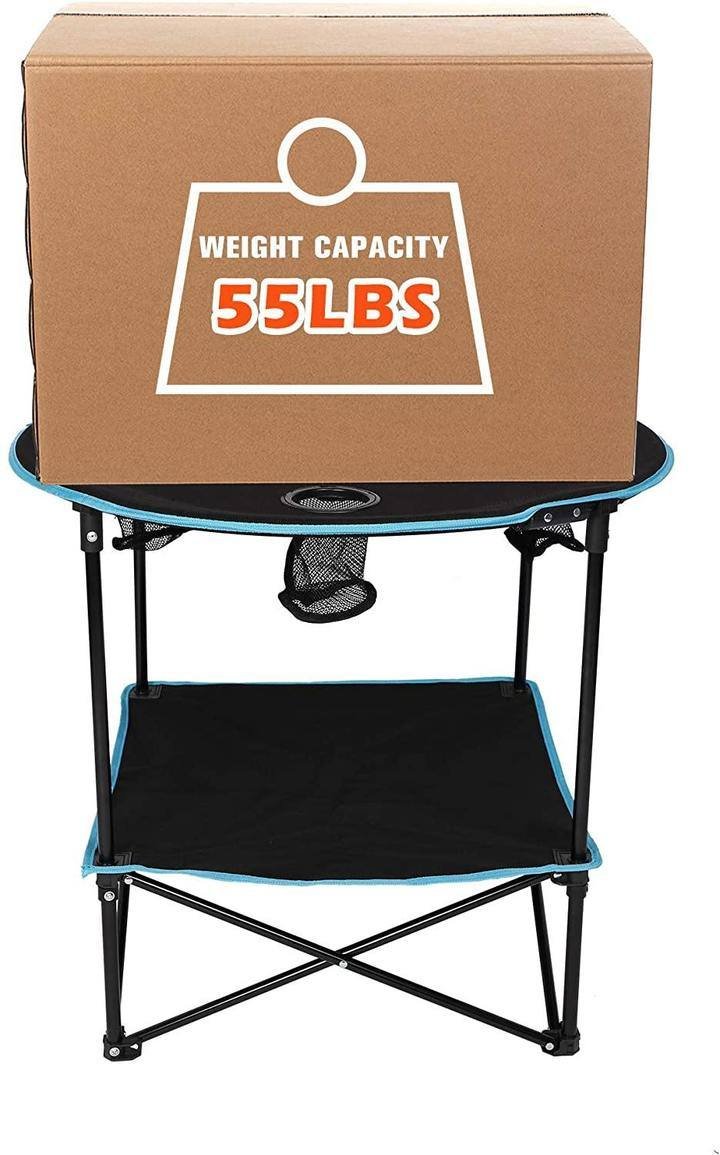 -Portable Folding Table | Made of oxford fabric and steel, sturdy and stable; The height is similar to the height of the folding chair armrest, perfect for camping picnic.