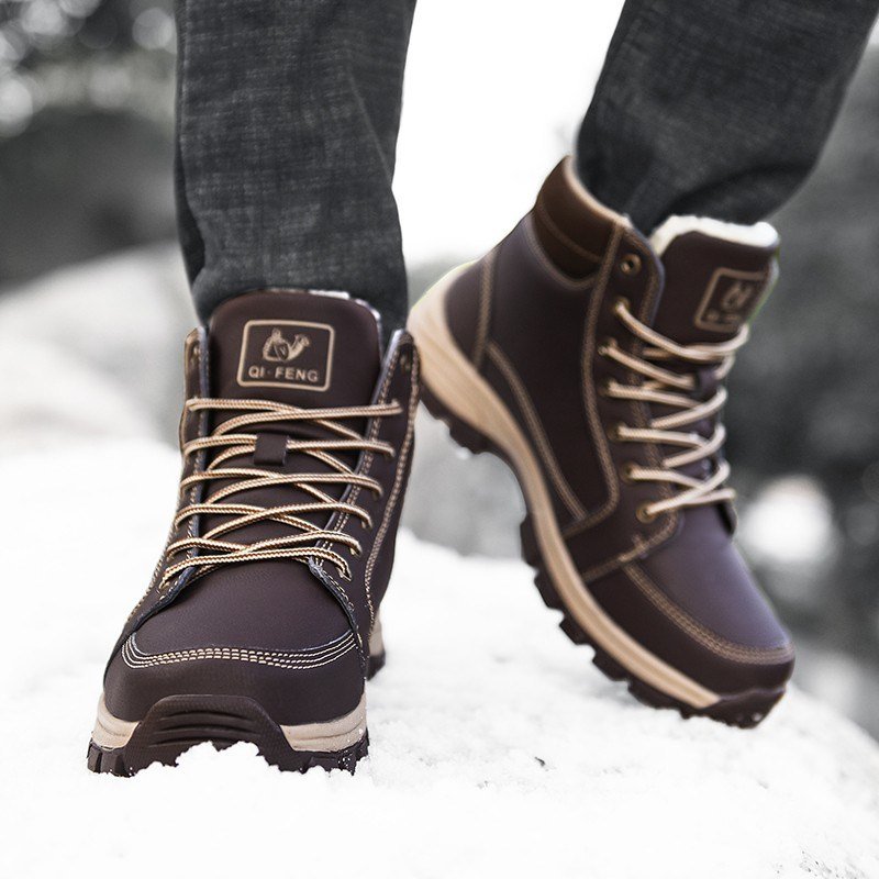 Home > Brand Winter Leather Men Boots Plush Warm Men Snow Boots Outdoor Non-slip Hiking Boots Men Winter Shoes Men Sneakers Size 39-48