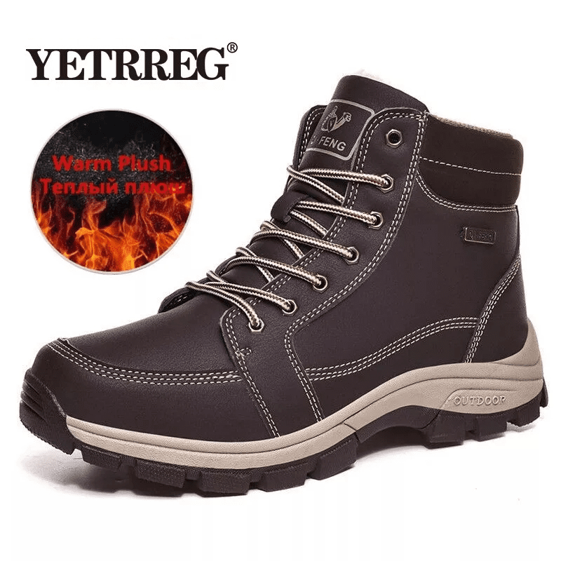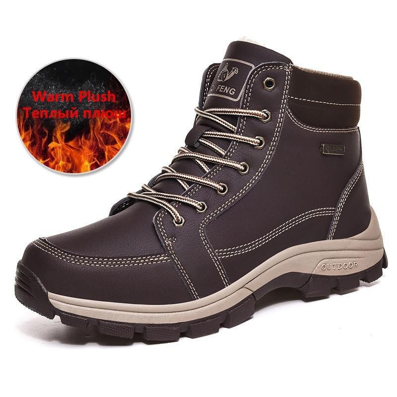 Home > Brand Winter Leather Men Boots Plush Warm Men Snow Boots Outdoor Non-slip Hiking Boots Men Winter Shoes Men Sneakers Size 39-48