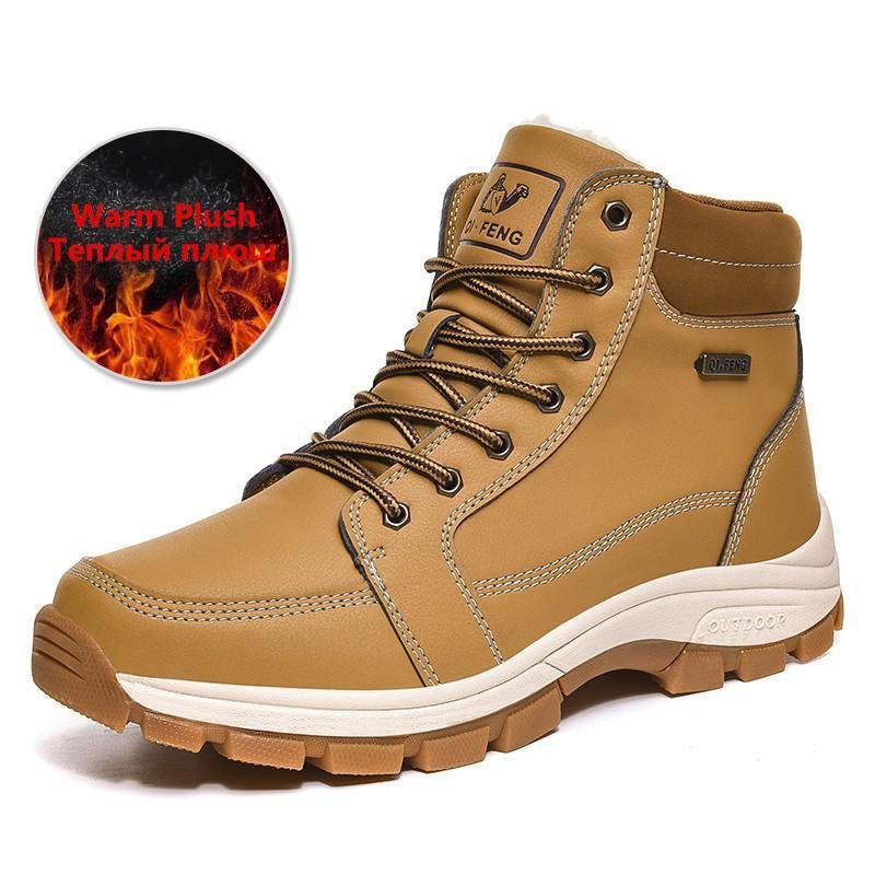 Home > Brand Winter Leather Men Boots Plush Warm Men Snow Boots Outdoor Non-slip Hiking Boots Men Winter Shoes Men Sneakers Size 39-48