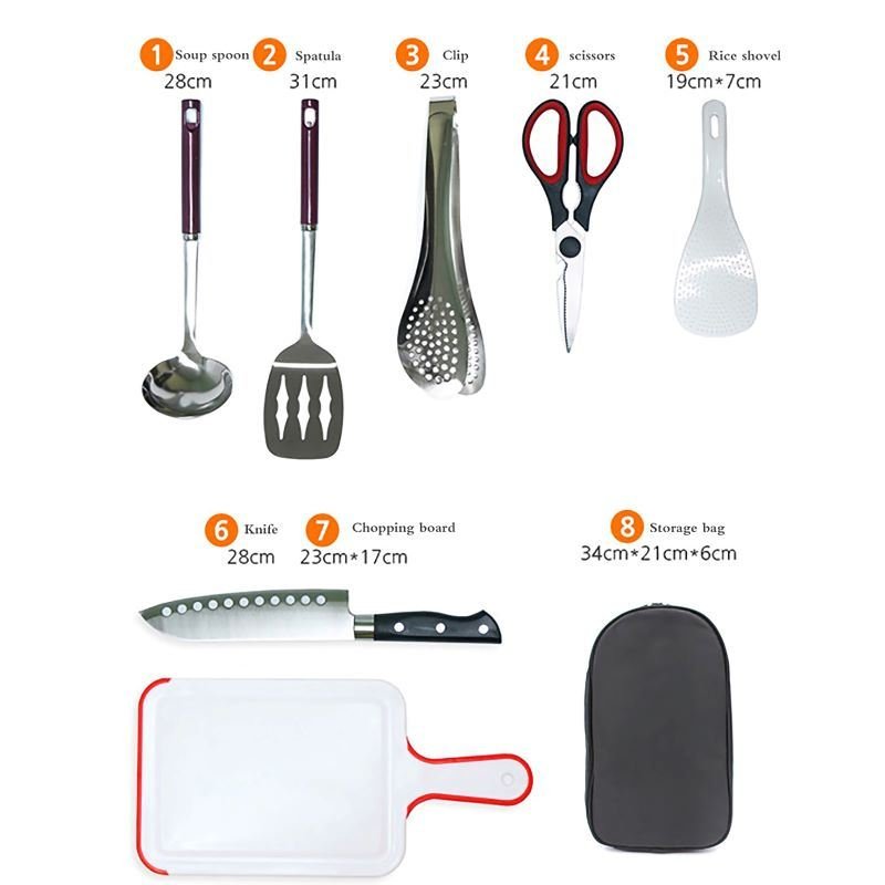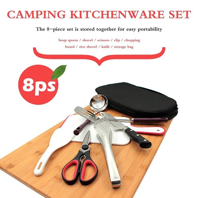 4.Travel utensil cookware kit is the perfect camp kitchen accessory, and it holds all your essential outdoor cooking utensils.