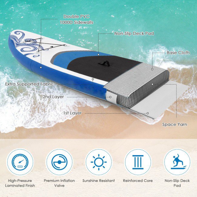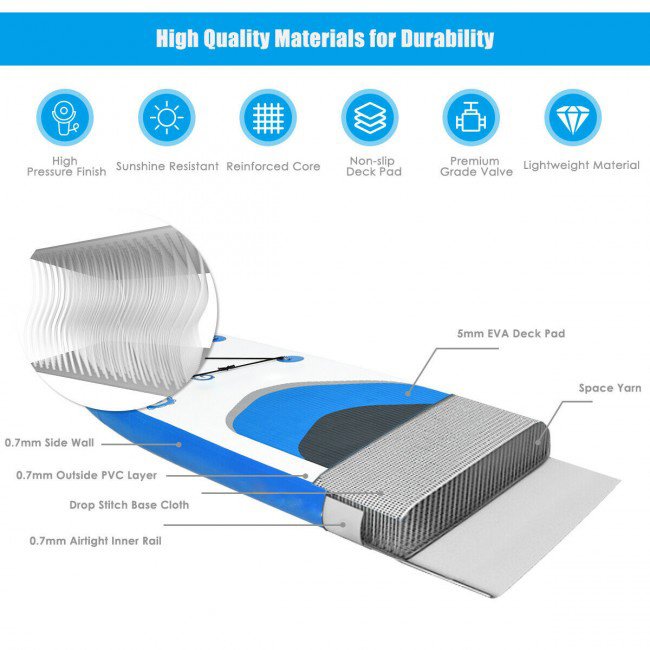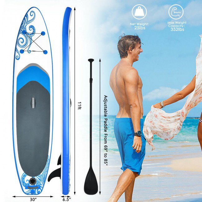 Portable paddle board--- Comes with a carry backpack, you can easily store and transport this board to wherever you want to go. When deflated and rolled up, this paddle board is only 24.3 lbs. Really convenient for daily use